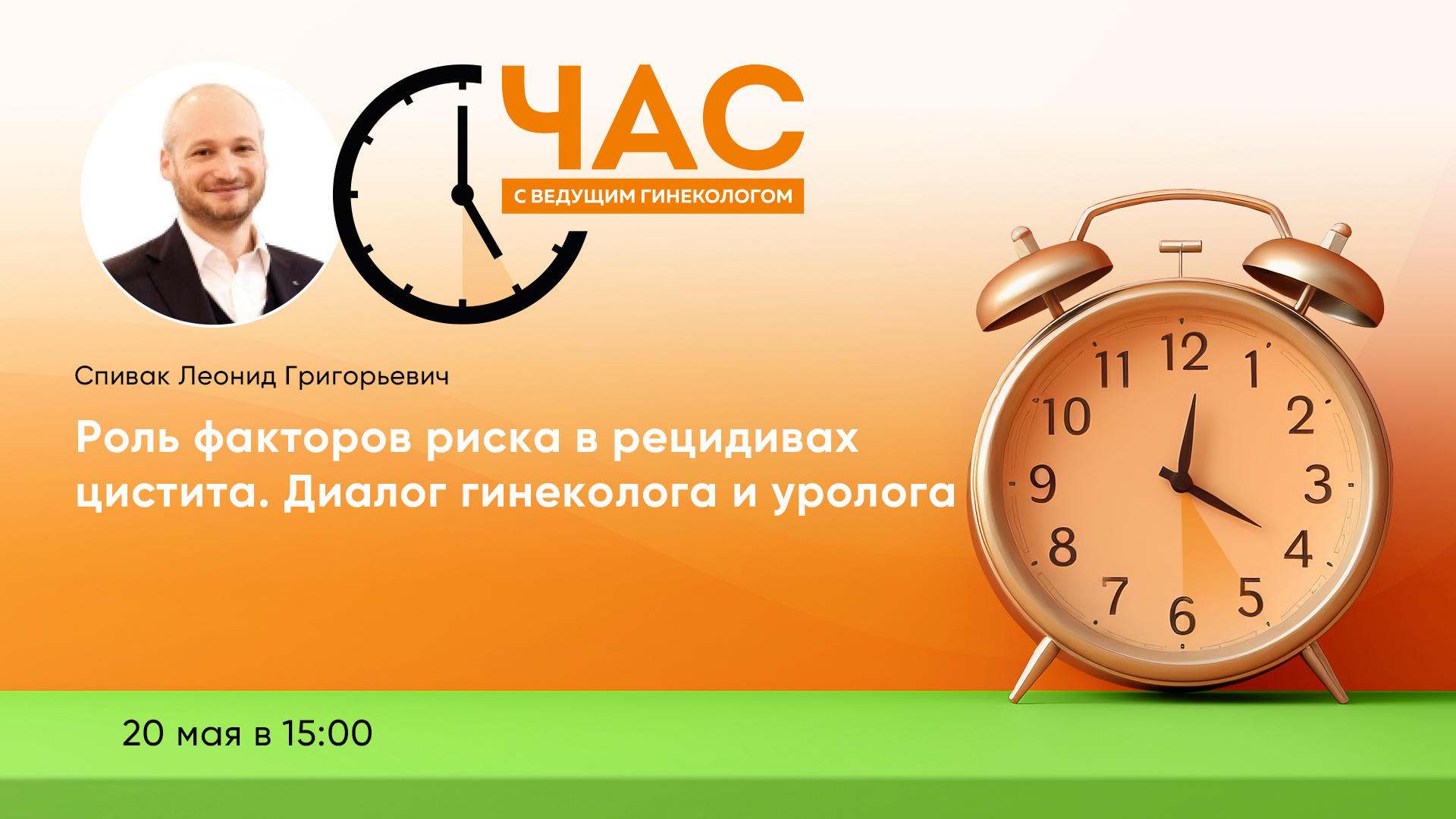 Приглашаем присоединиться к трансляции Часа с ведущим гинекологом на тему «Роль факторов риска в рецидивах цистита. Диалог гинеколога и уролога», которая состоится 20 мая в 15:00 по московскому времени.