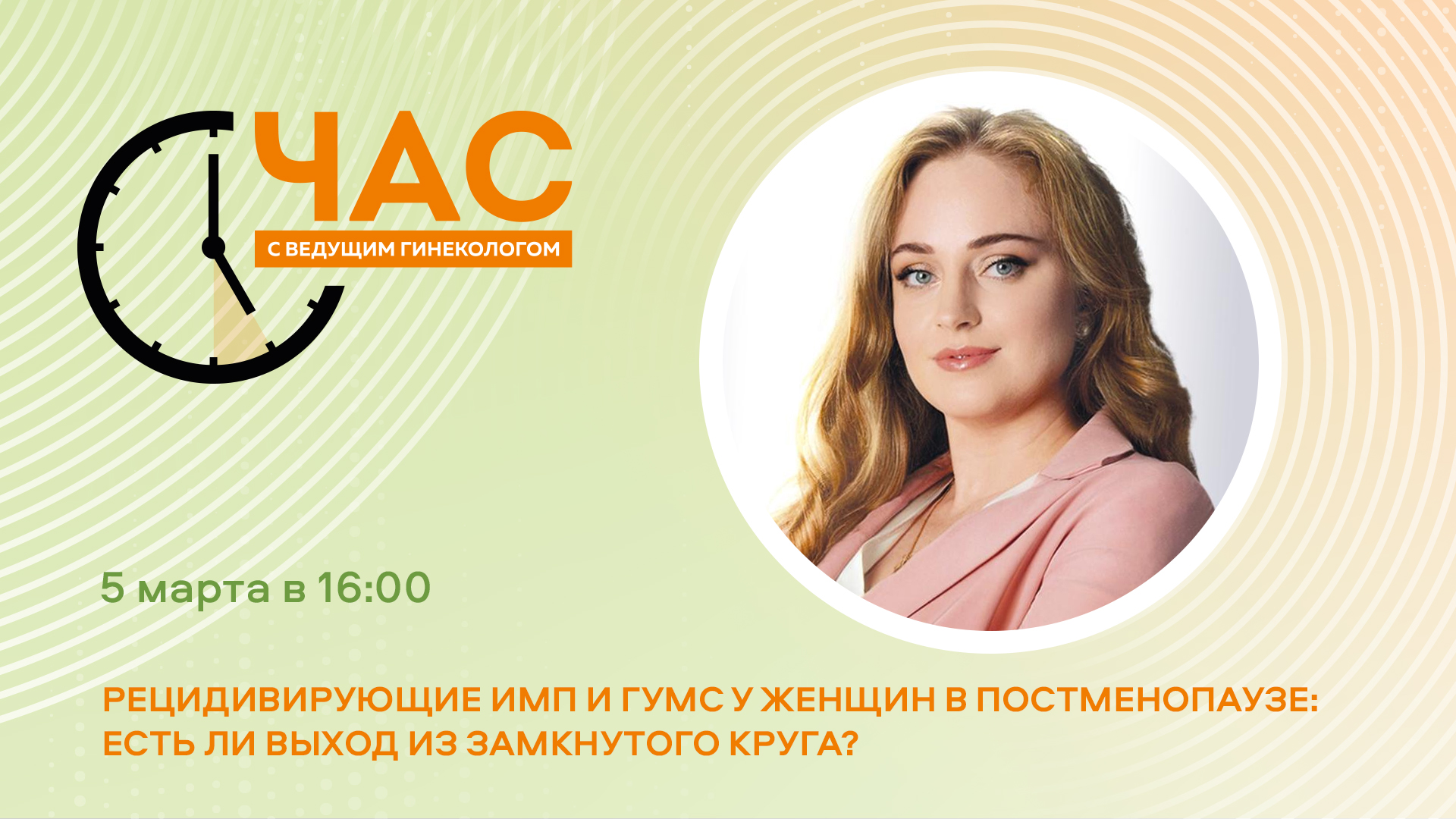 Приглашаем присоединиться к трансляции Час с ведущим гинекологом на тему «Рецидивирующие ИМП и ГУМС у женщин в постменопаузе: есть ли выход из замкнутого круга?», которая состоится 5 марта в 16:00 по московскому времени.