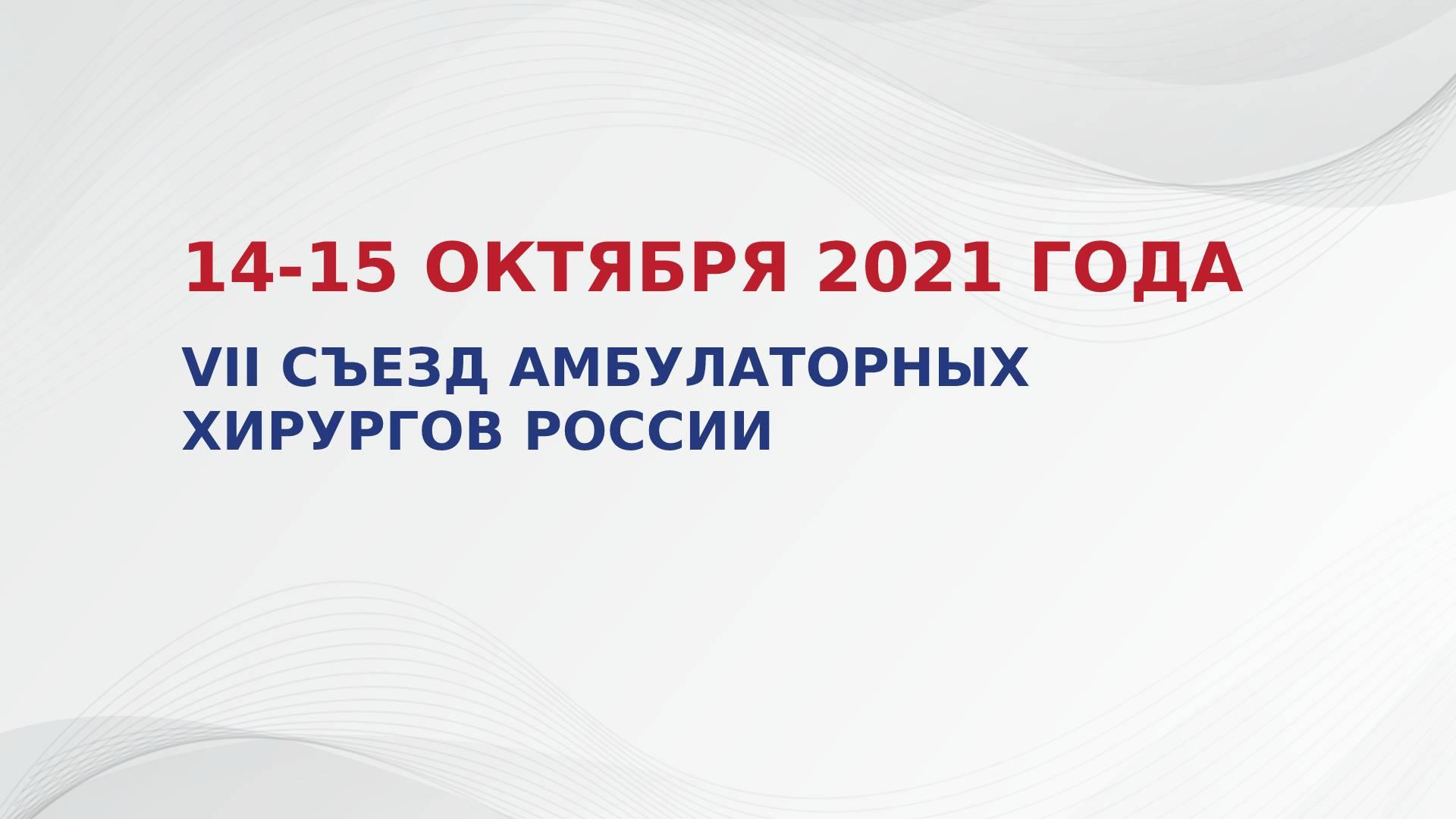Приглашаем принять участие в VII Съезде амбулаторных хирургов России, который состоится 14 и 15 октября 2021 года в городе Ставрополь.