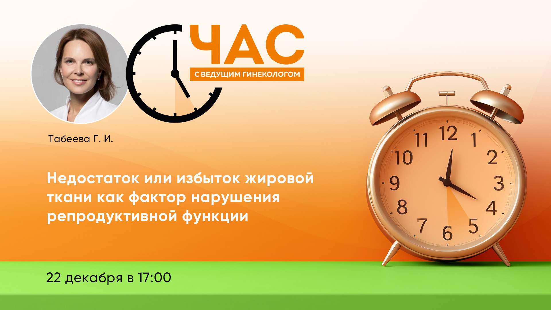22 декабря в 17:00! Час с ведущим гинекологом «Недостаток или избыток жировой ткани как фактор нарушения репродуктивной функции»
