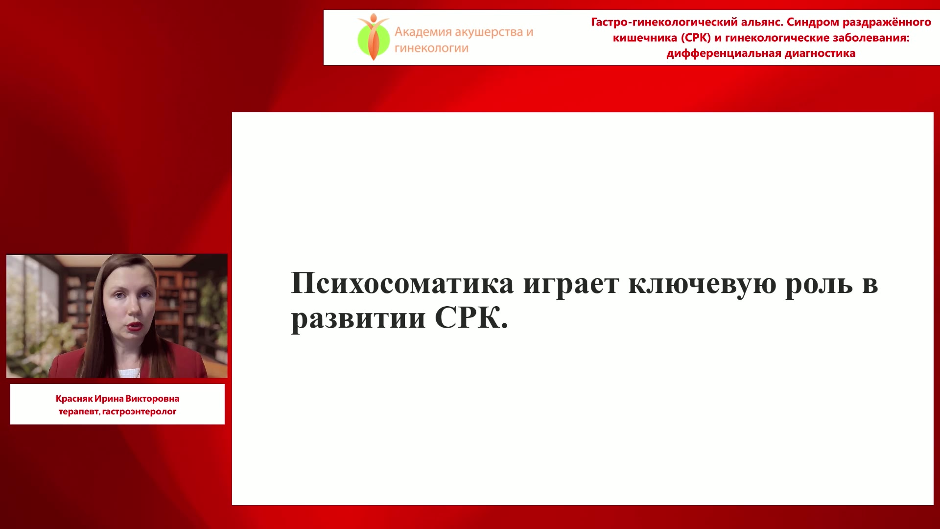 Красняк И.В. - Гастро-гинекологический альянс. Синдром раздражённого кишечника (СРК) и гинекологические заболевания: дифференциальная диагностика